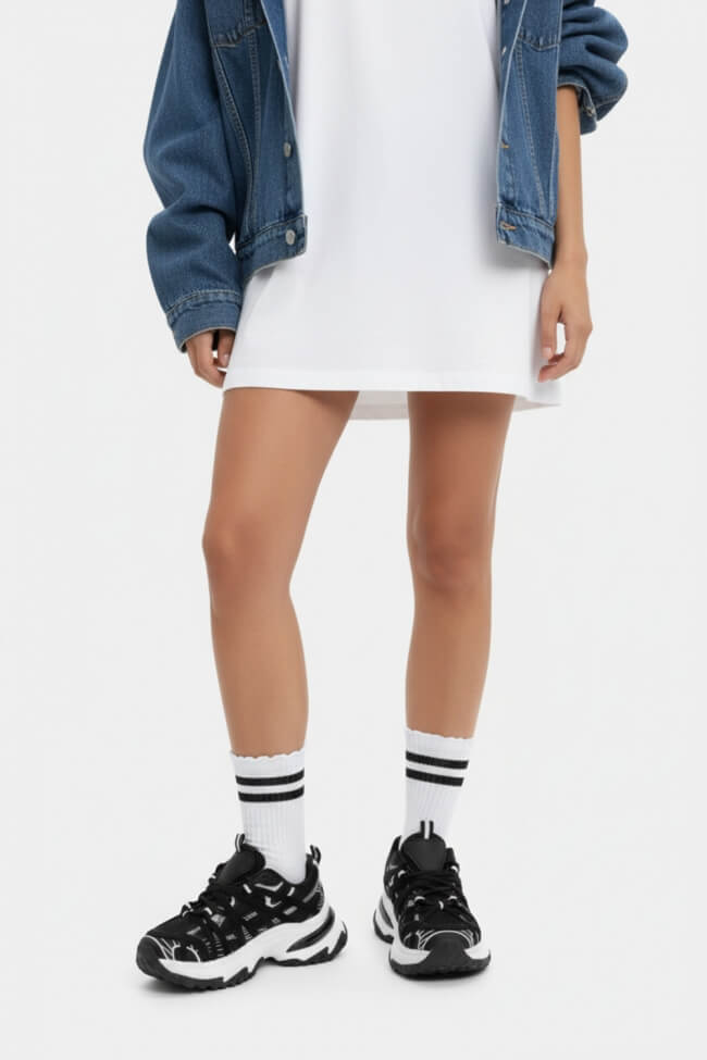 Combină-le cu un colant confortabil pentru un look sportiv desăvârșit sau poartă-le cu o rochie casual pentru un look mai jucăuș.